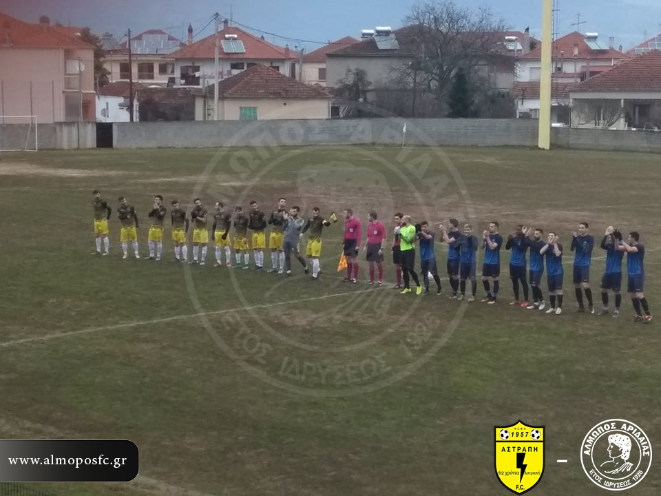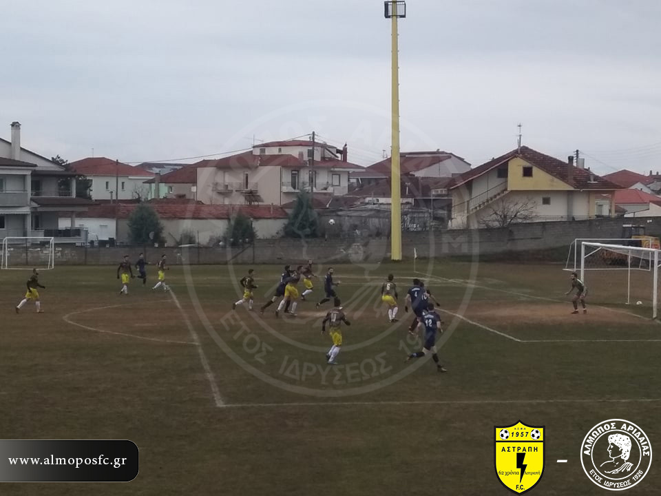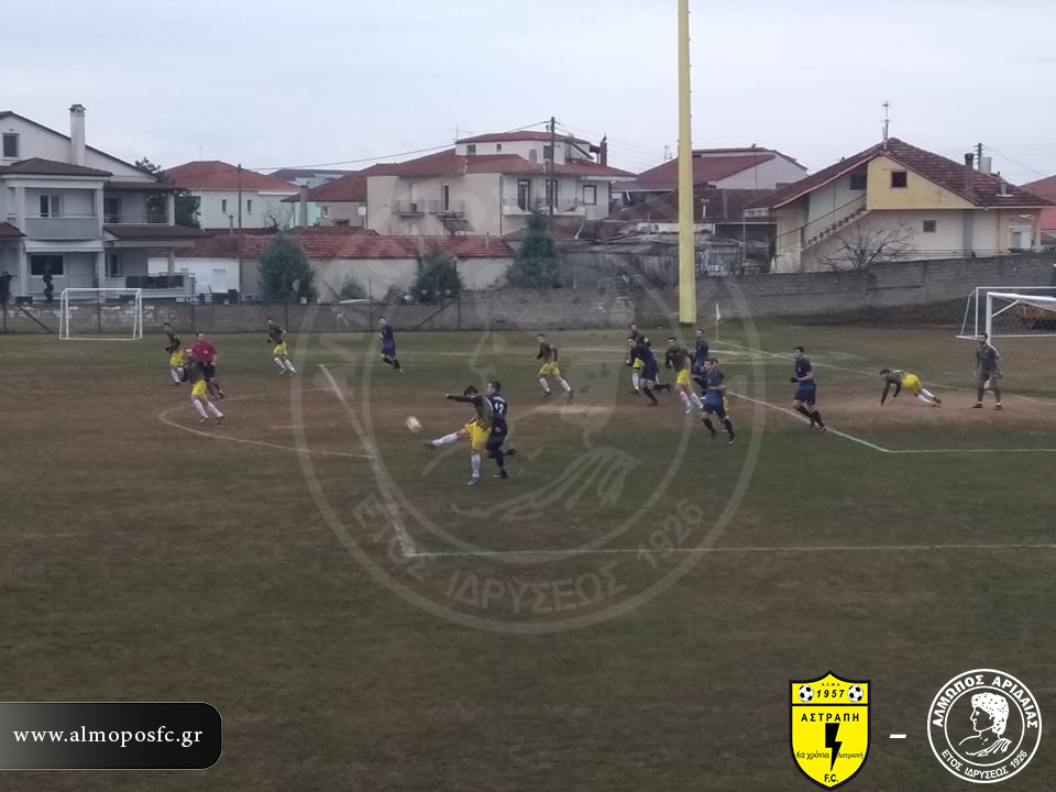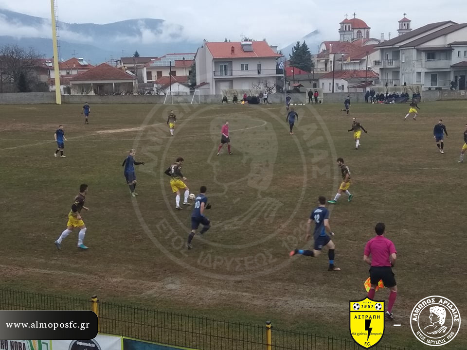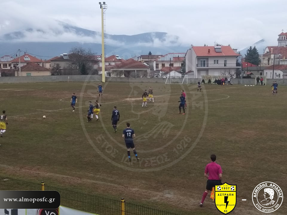 Το 0-1 έκανε ο Warden μετά από σουτ έξω από την μεγάλη περιοχή. Στο δεύτερο ημίχορνο ο Αλμωπός συνέχισε όπως ξεκίνησε, με υπεροχή εξ αρχής και στο 55ο λεπτό ο Πέττας έκανε το 0-2 με όμορφο πλασέ. Σειρά είχε ο Κωστούλας στο 71ο λεπτό όπου μετά από ωραία σέντρα έκανε το 0-3 με ωραίο τρόπο ενώ λίγα λεπτά αργότερα ο ίδιος με όμορφο σουτ διαμόρφωσε το τελικό 0-4. Ο Αλμωπός την επόμενη αγωνιστική υποδέχεται την Θύελλα Σαρακηνών στο Δημοτικό στάδιο Αριδαίας για την 20η αγωνιστική.