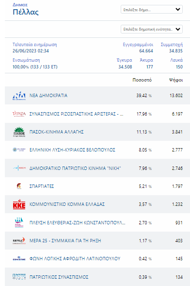Τι ψήφισαν οι δημότες των δήμων Πέλλας- Σκύδρας και Έδεσσας στο 100% της καταμέτρησης