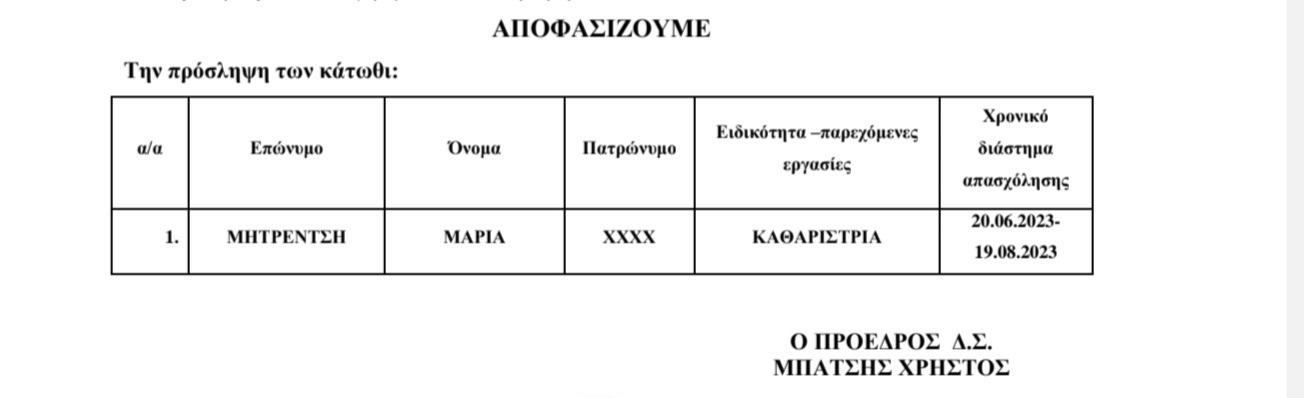 Νέα πρόσληψη στα Λουτρά Αλμωπίας- Όνομα