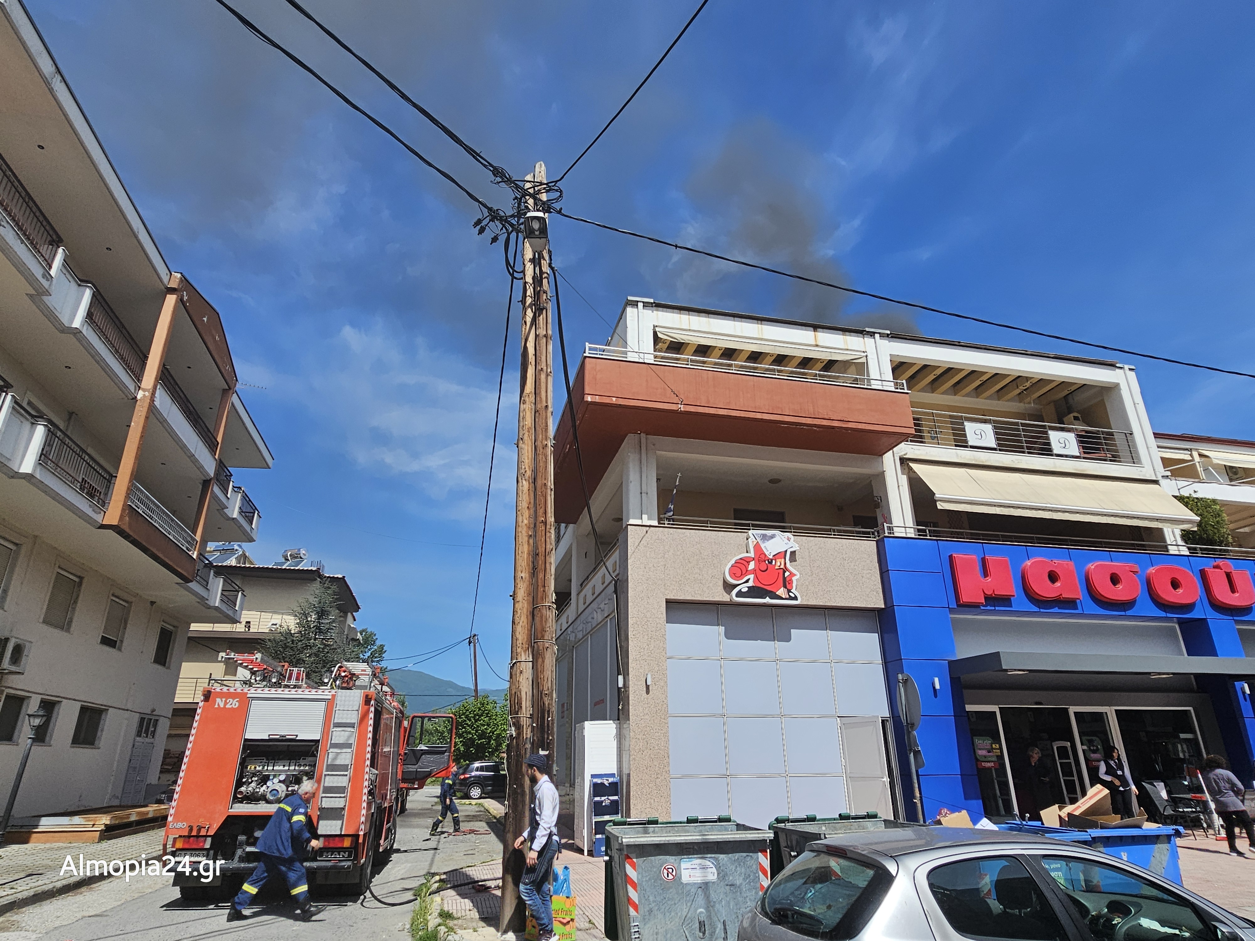 Φωτιά ξέσπασε πριν από λίγο στην ταράτσα κτιρίου όπου στο ισόγειο στεγάζεται το super market Μασούτης.