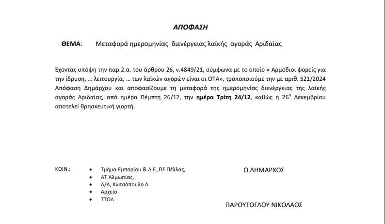 Αλλάζει ημέρα η λαϊκή αγορά Αριδαίας