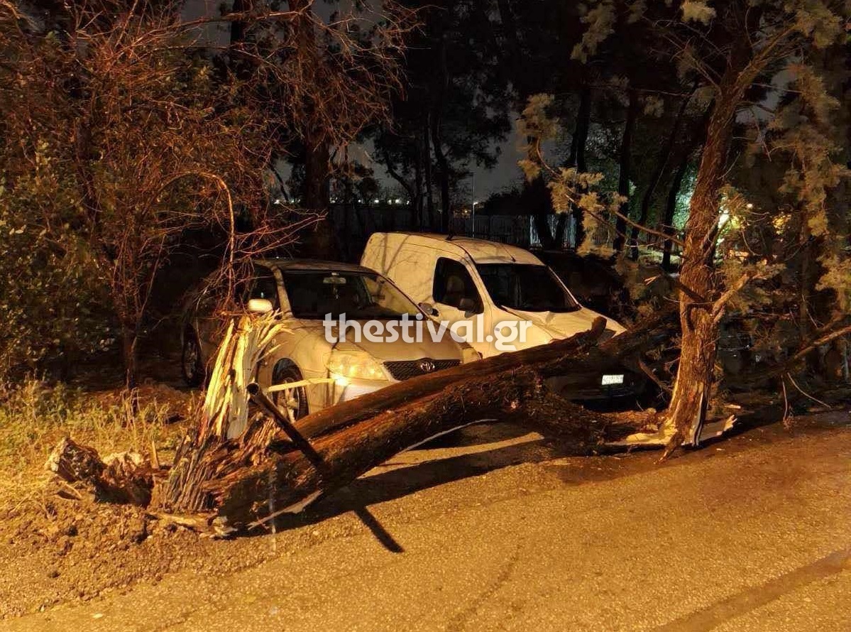 Αρκετές πτώσεις δέντρων σημειώθηκαν και σε περιοχές της Θεσσαλονίκης προκαλώντας μάλιστα σε κάποιες περιπτώσεις και φθορές σε σταθμευμένα οχήματα.