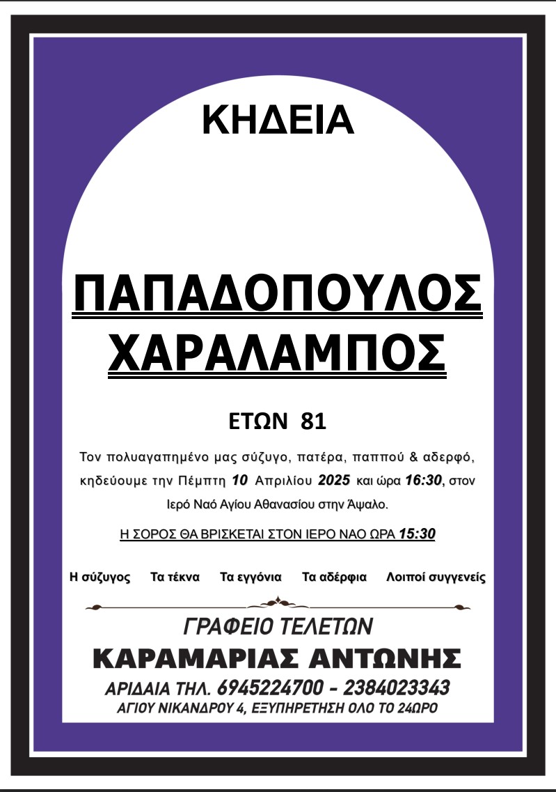Εφυγε από την ζωή ο Παπαδόπουλος Χαράλαμπος